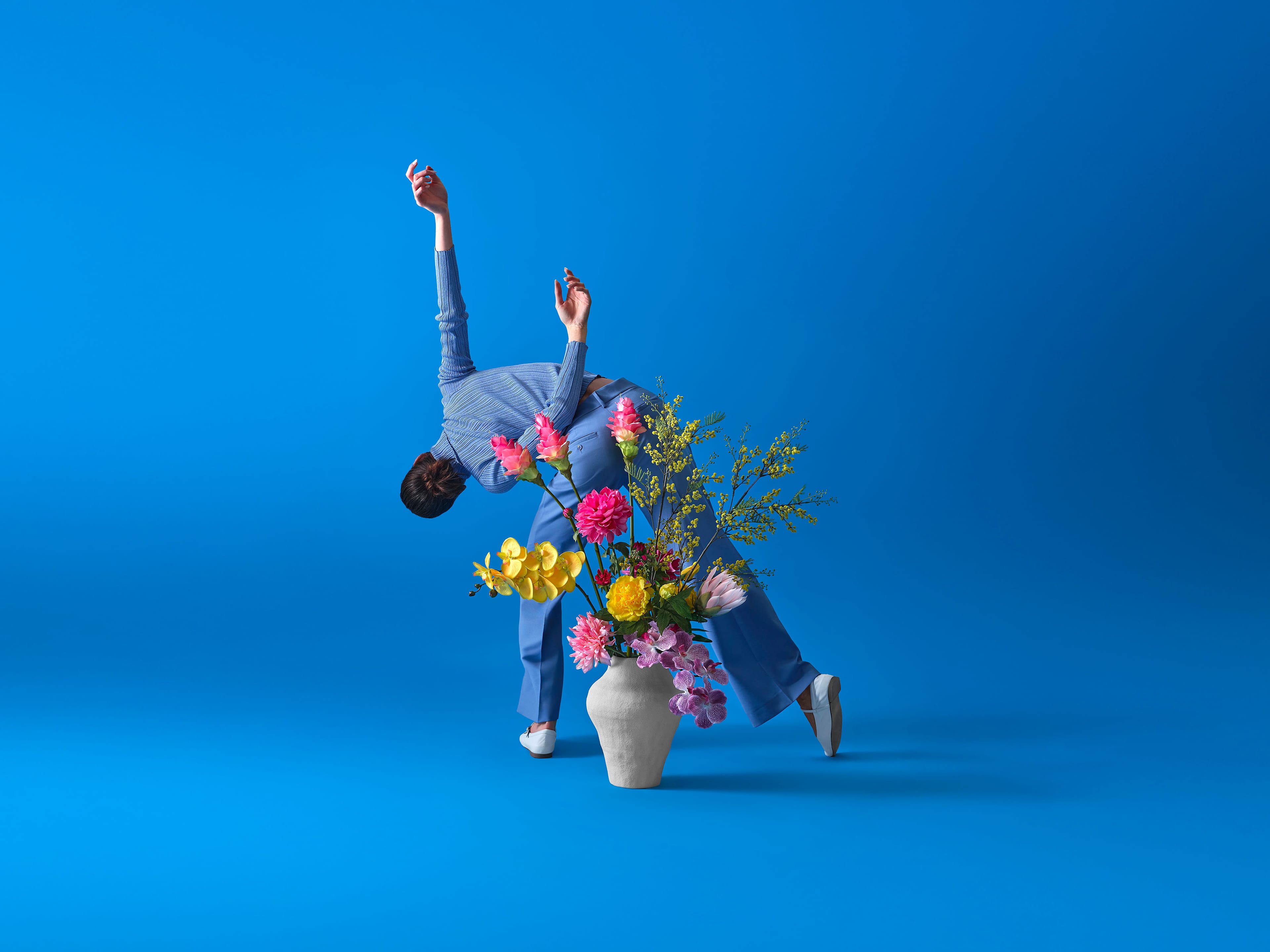 Bij Bloom & Wolf draait alles om complete bloemendesigns. Elk boeket wordt zorgvuldig afgestemd op een bijpassende vaas, zodat je een echte eyecatcher in huis haalt. Liever alleen een boeket? Geen probleem—combineer het met je eigen favoriete vaas en maak er jouw unieke statement van.