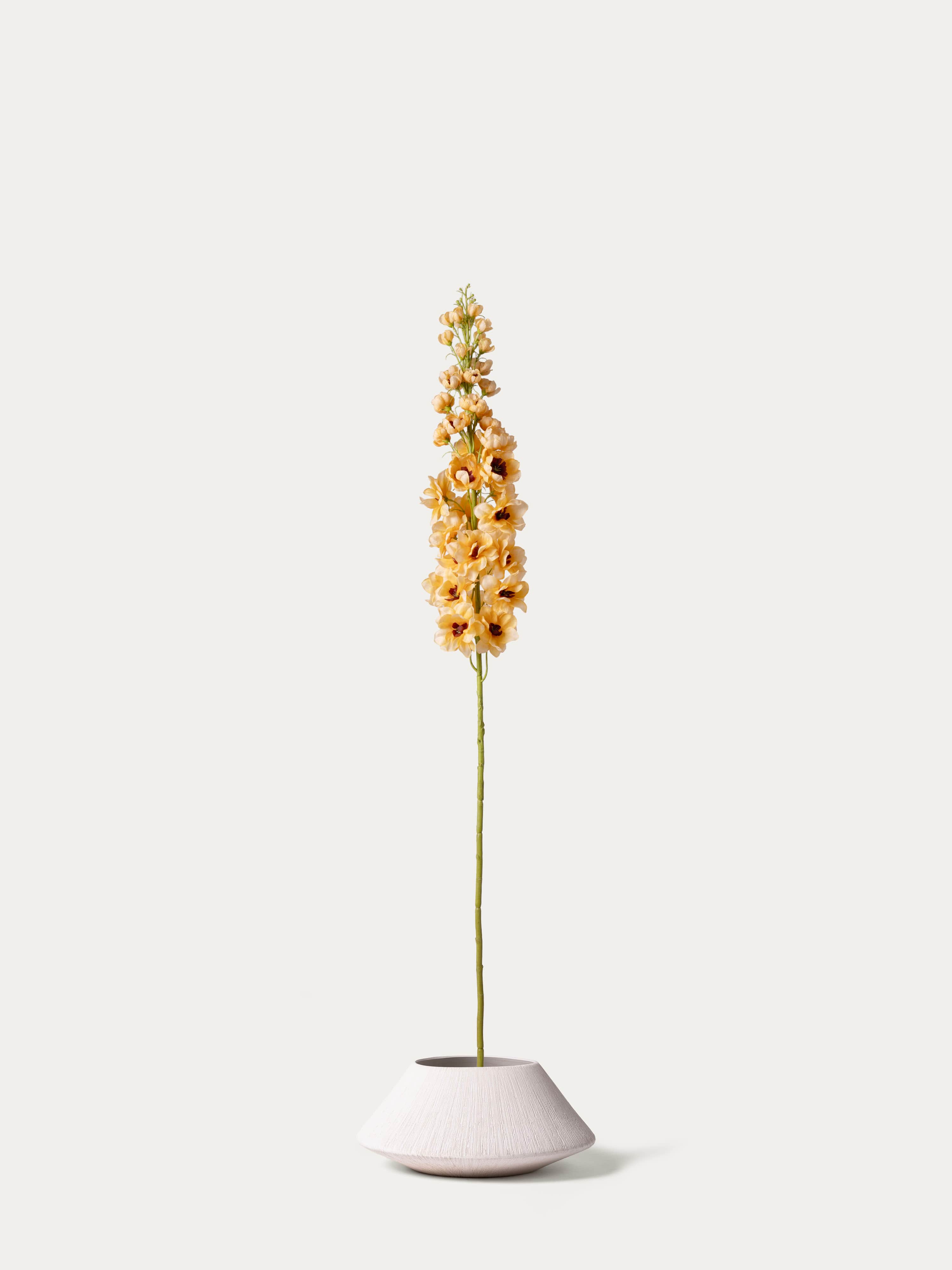 Deze zijden delphinium heeft kleine bloempjes in een aar, helder en vrolijk. De lange, sierlijke stelen geven extra hoogte en een levendig accent aan elk interieur of boeket.