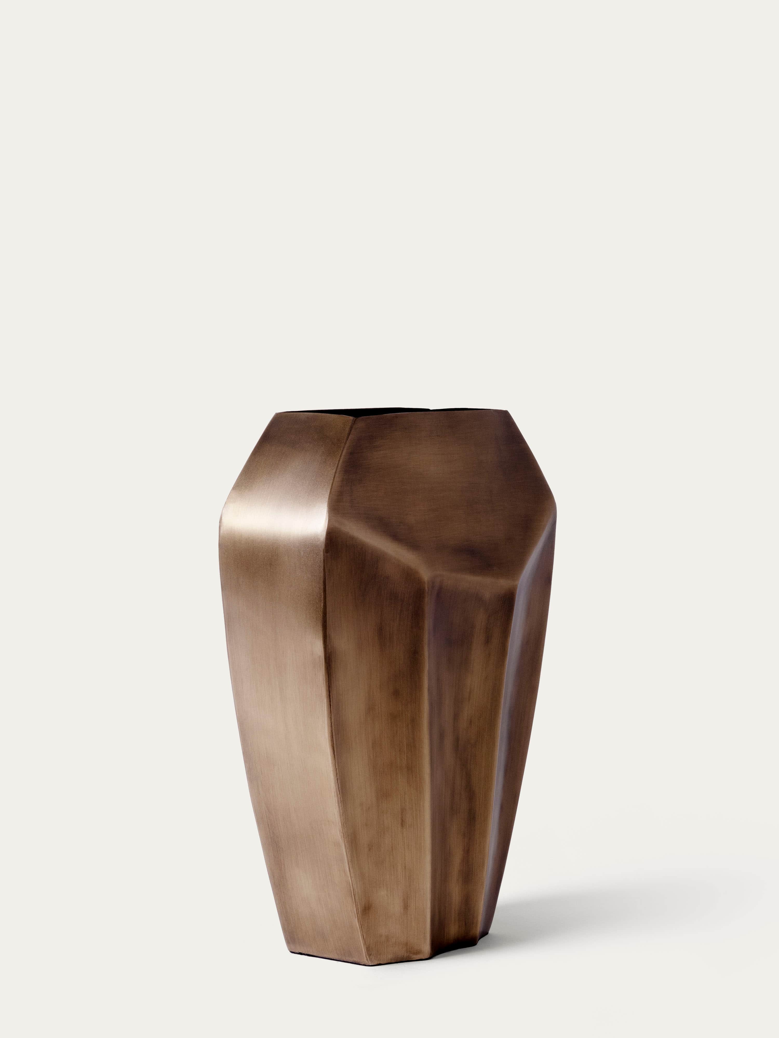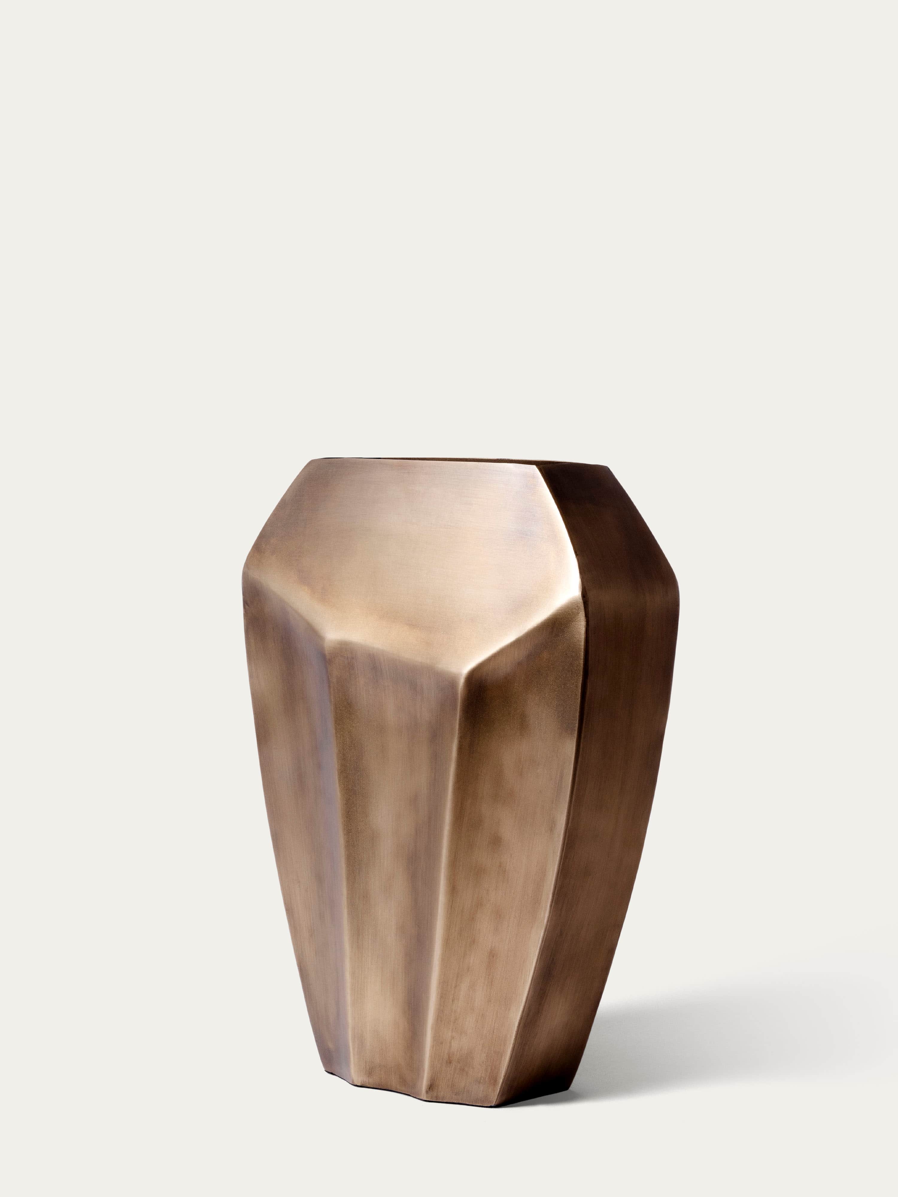 Een statementstuk in goud met een schildvormig silhouet. Modern, gedurfd en feestelijk.