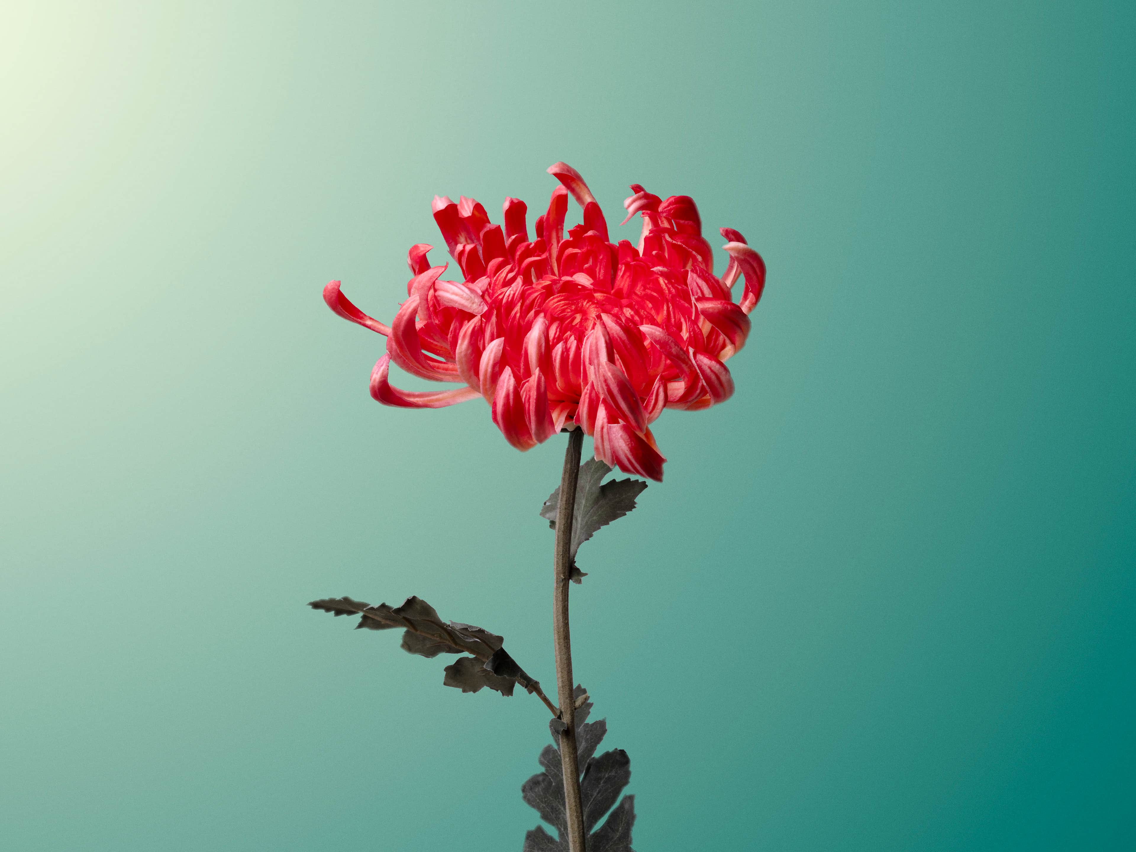 Deze chrysant heeft een ronde, volle vorm en brengt levendige energie.