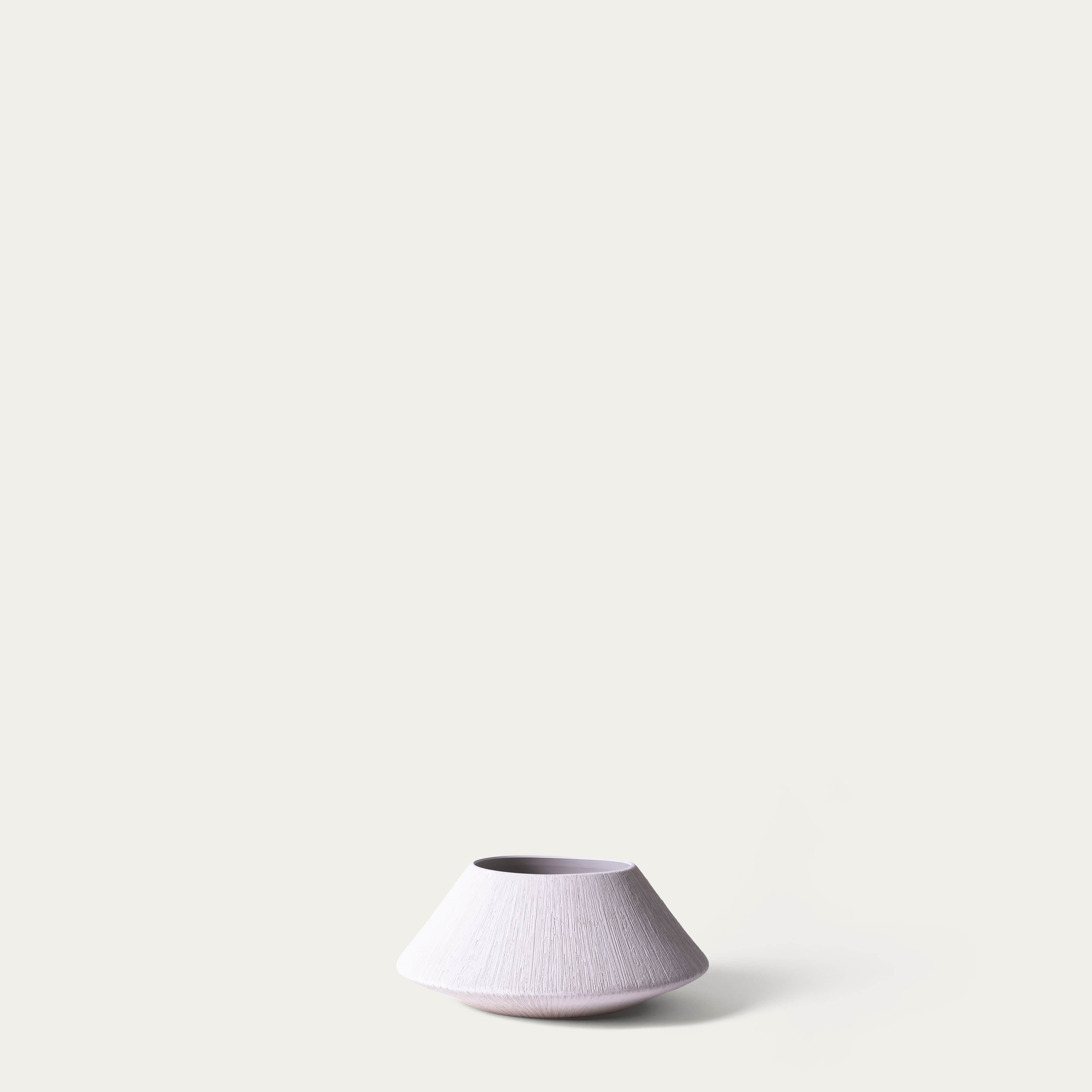 Een lage offwhite pot met een zachte, getextureerde afwerking. Rustig en eigentijds; een mooie basis voor originele boeketten.