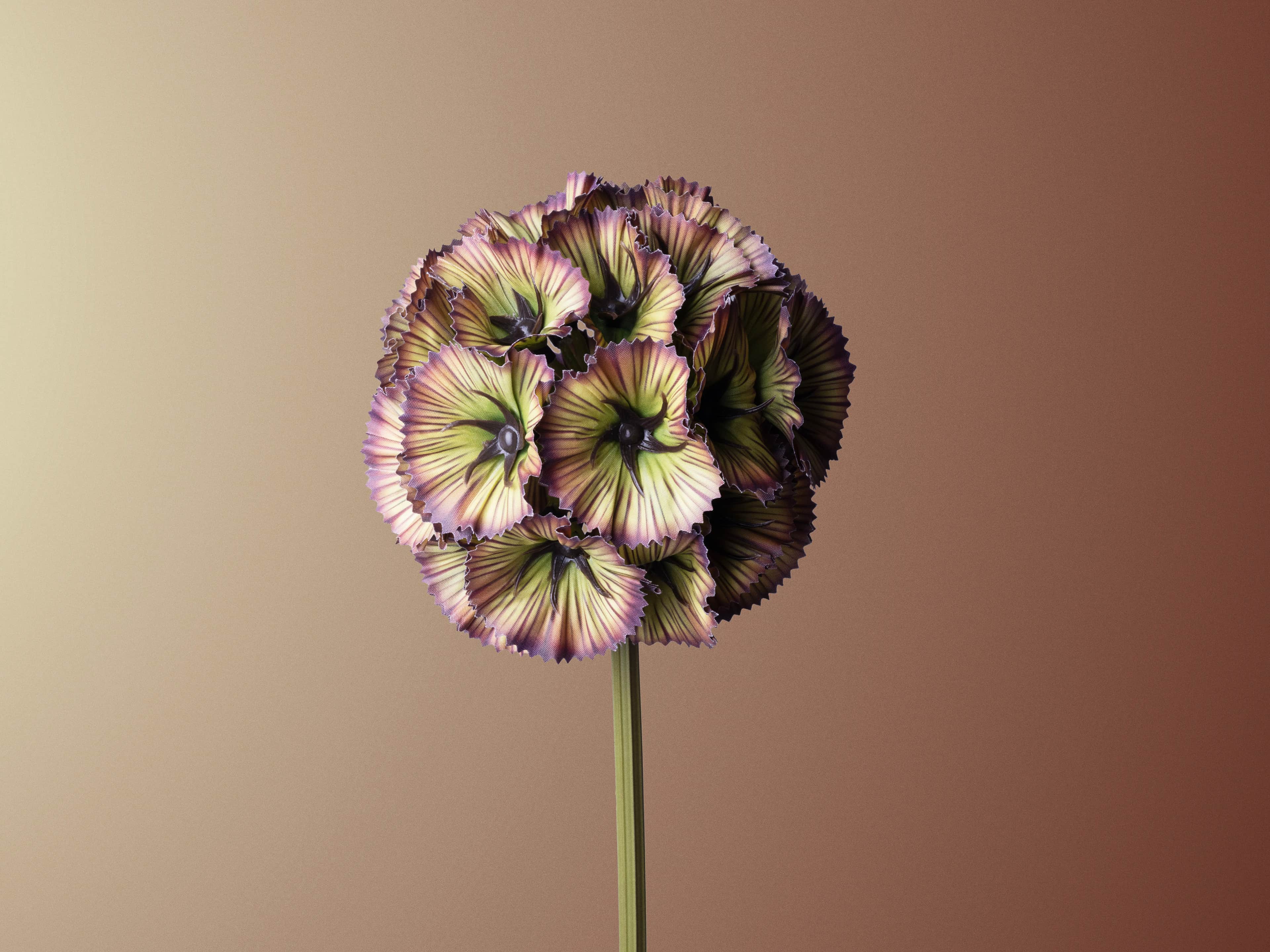 Deze groene scabiosa heeft een strakke ronde bolvorm en mooie herstkleur.
