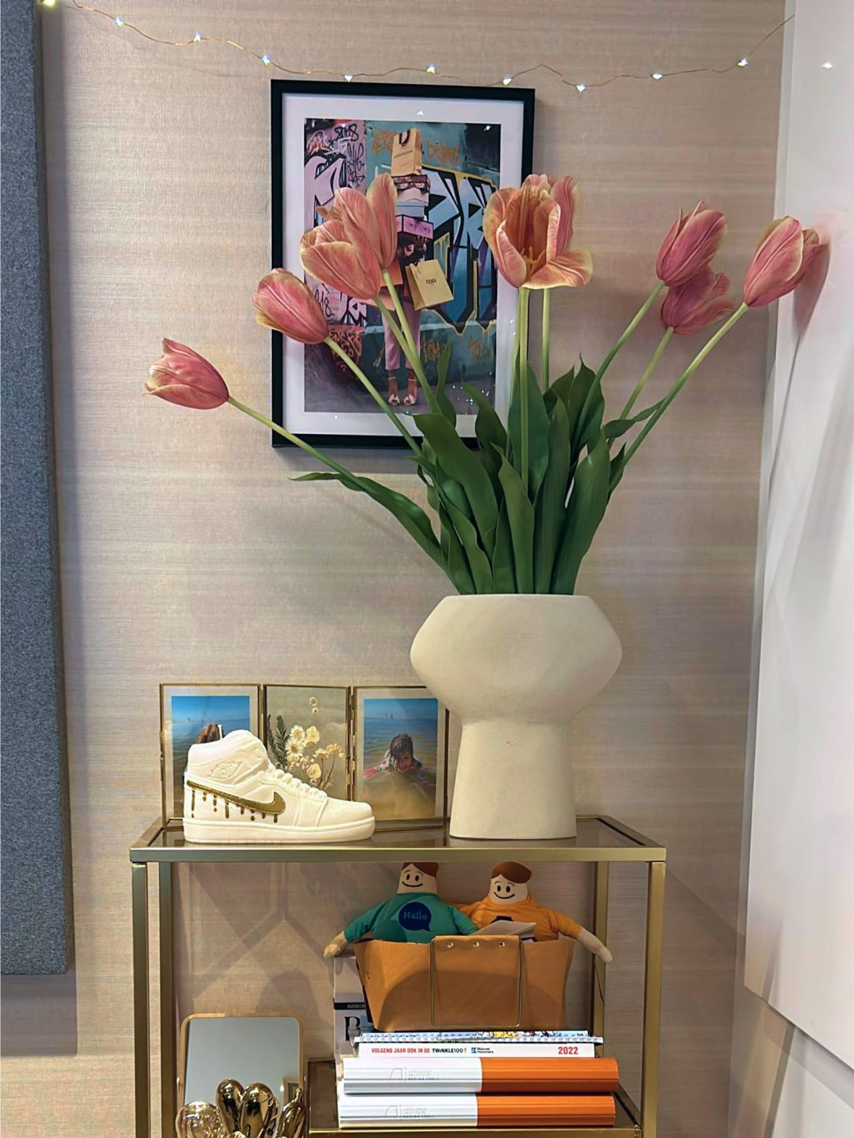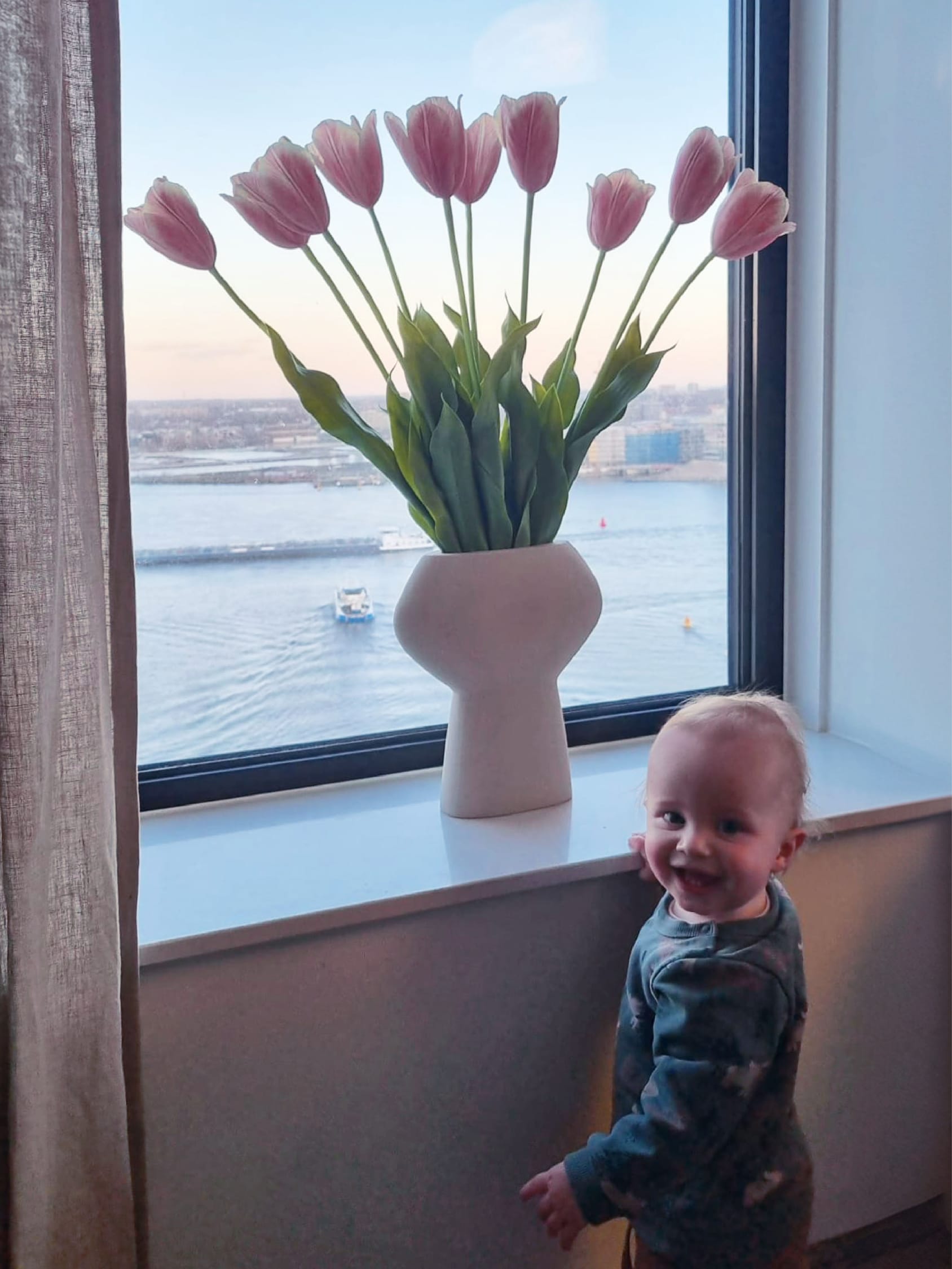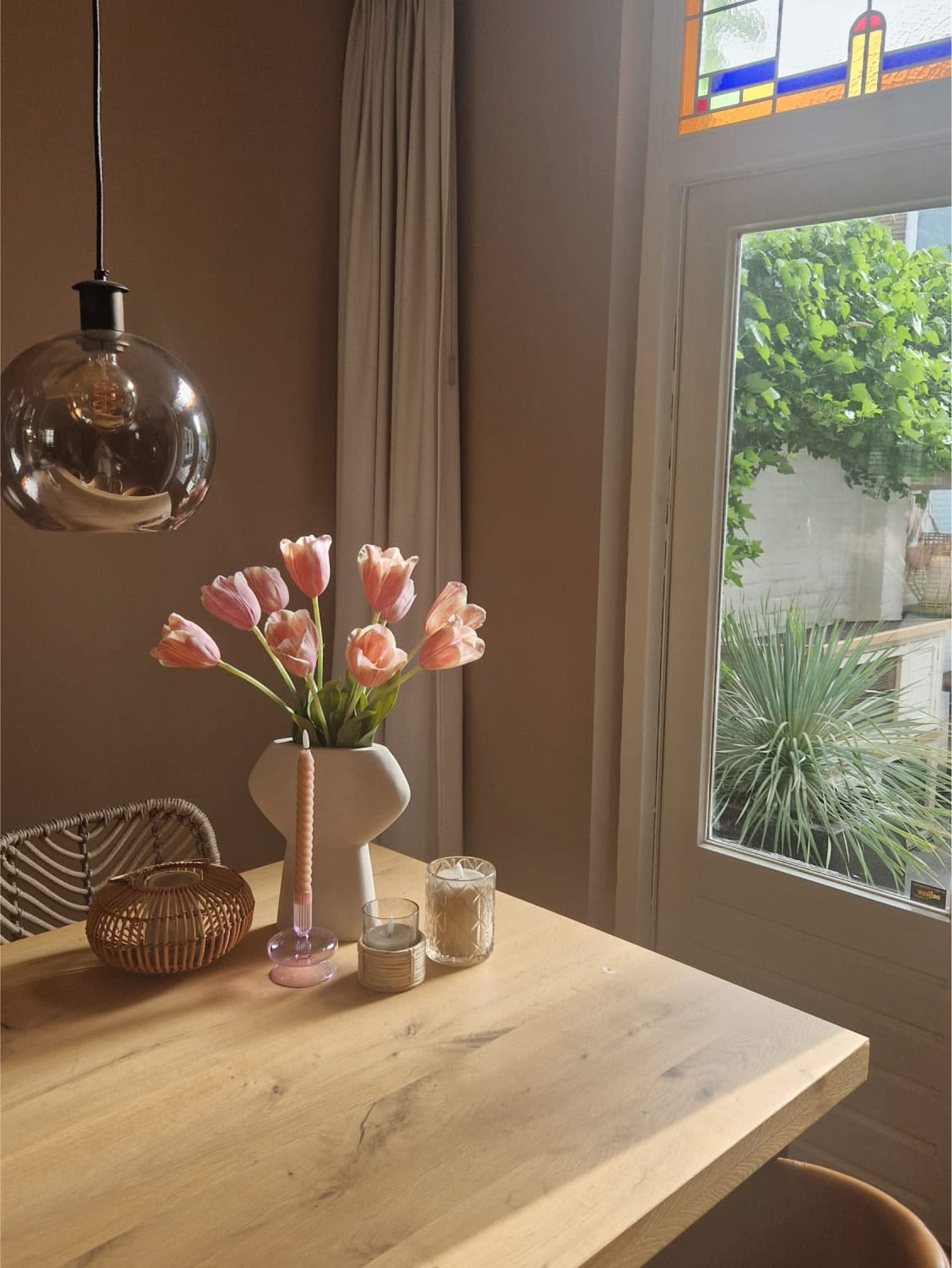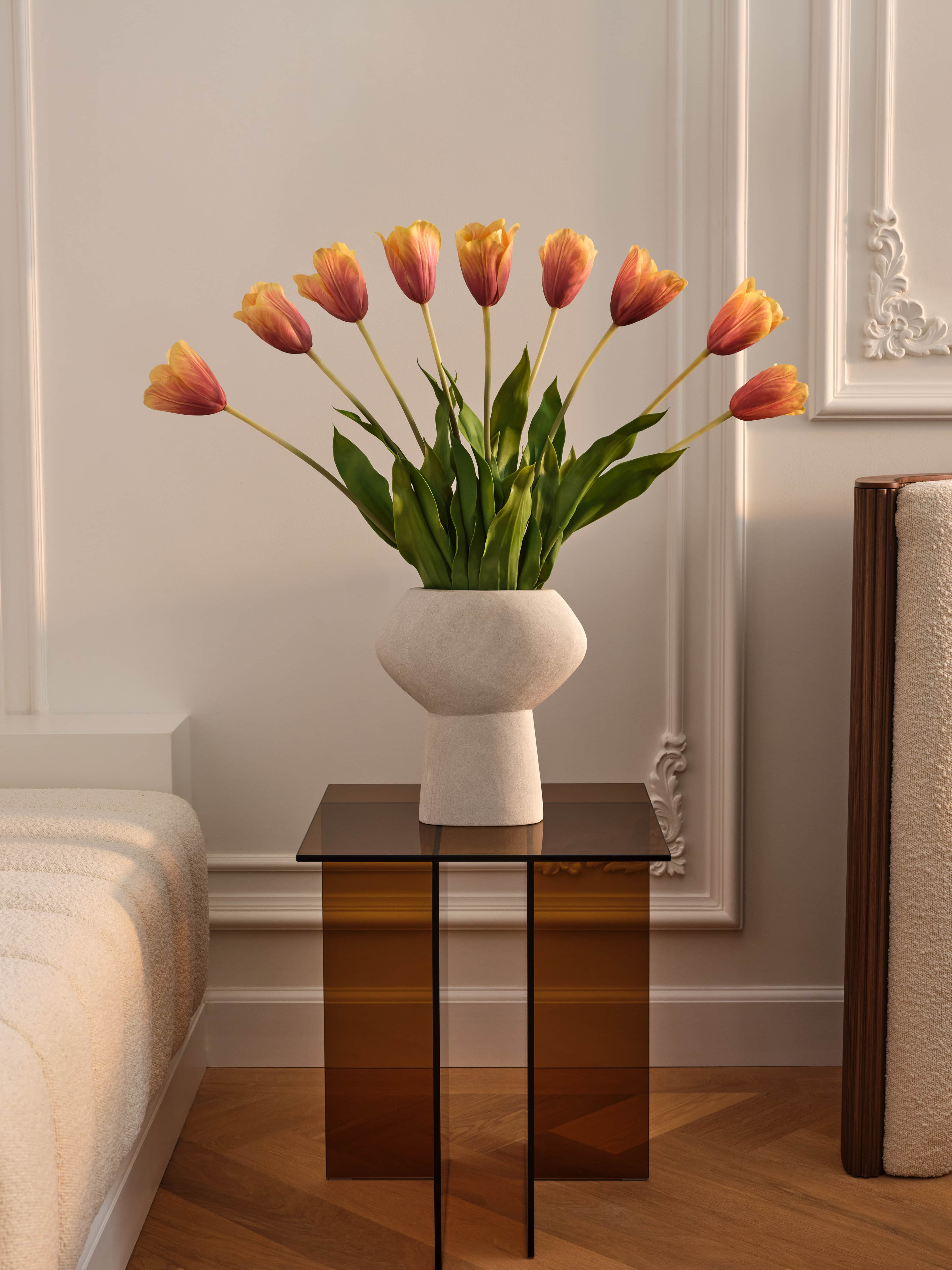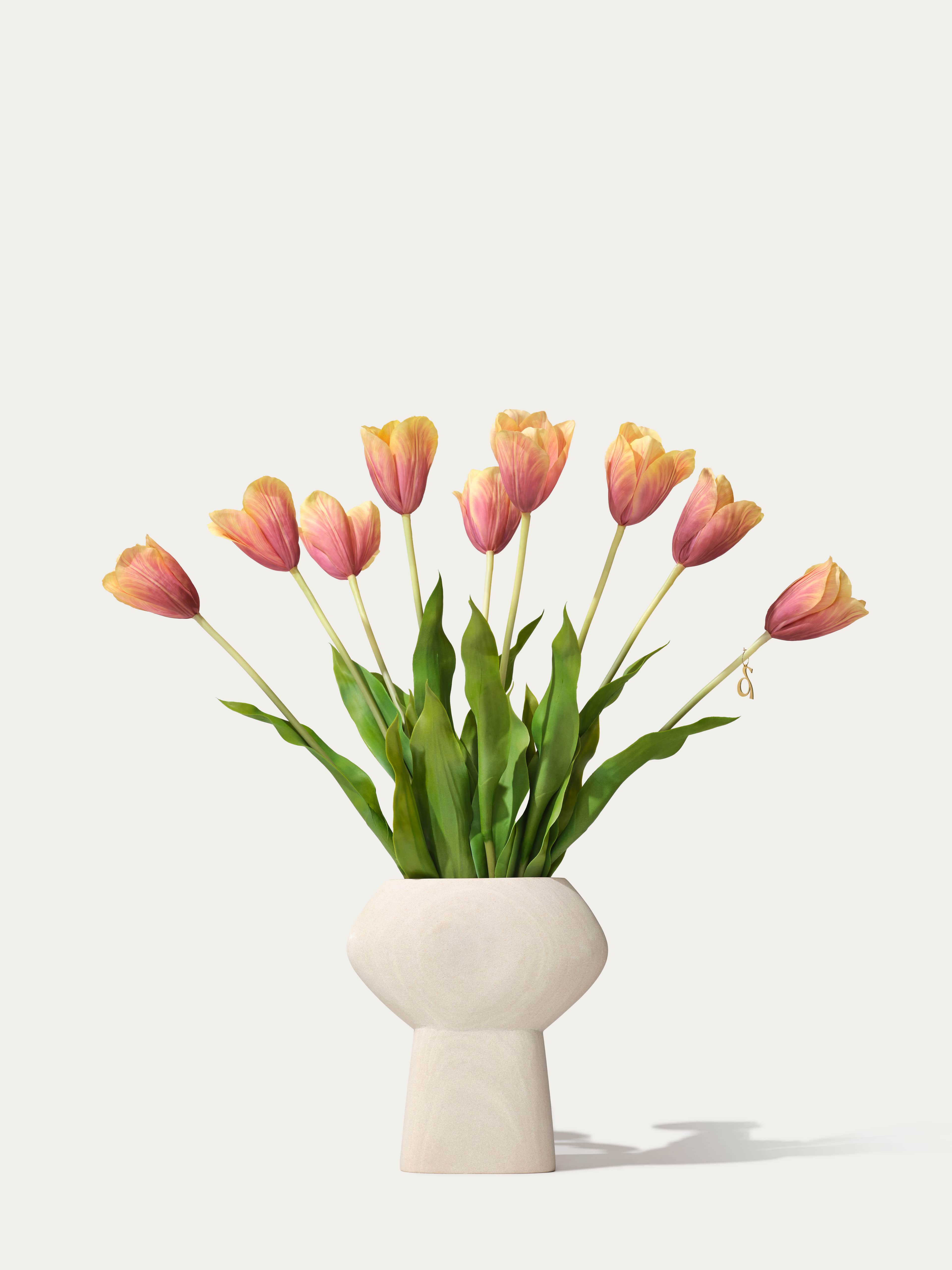 In hun prachtige vaas lijken deze blush tulpen rechtstreeks uit een Hollands meesterwerk te komen. Het is alsof je je eigen zijden stukje van de Gouden Eeuw in huis haalt met dit boeket - geen kunstgeschiedenis diploma vereist.