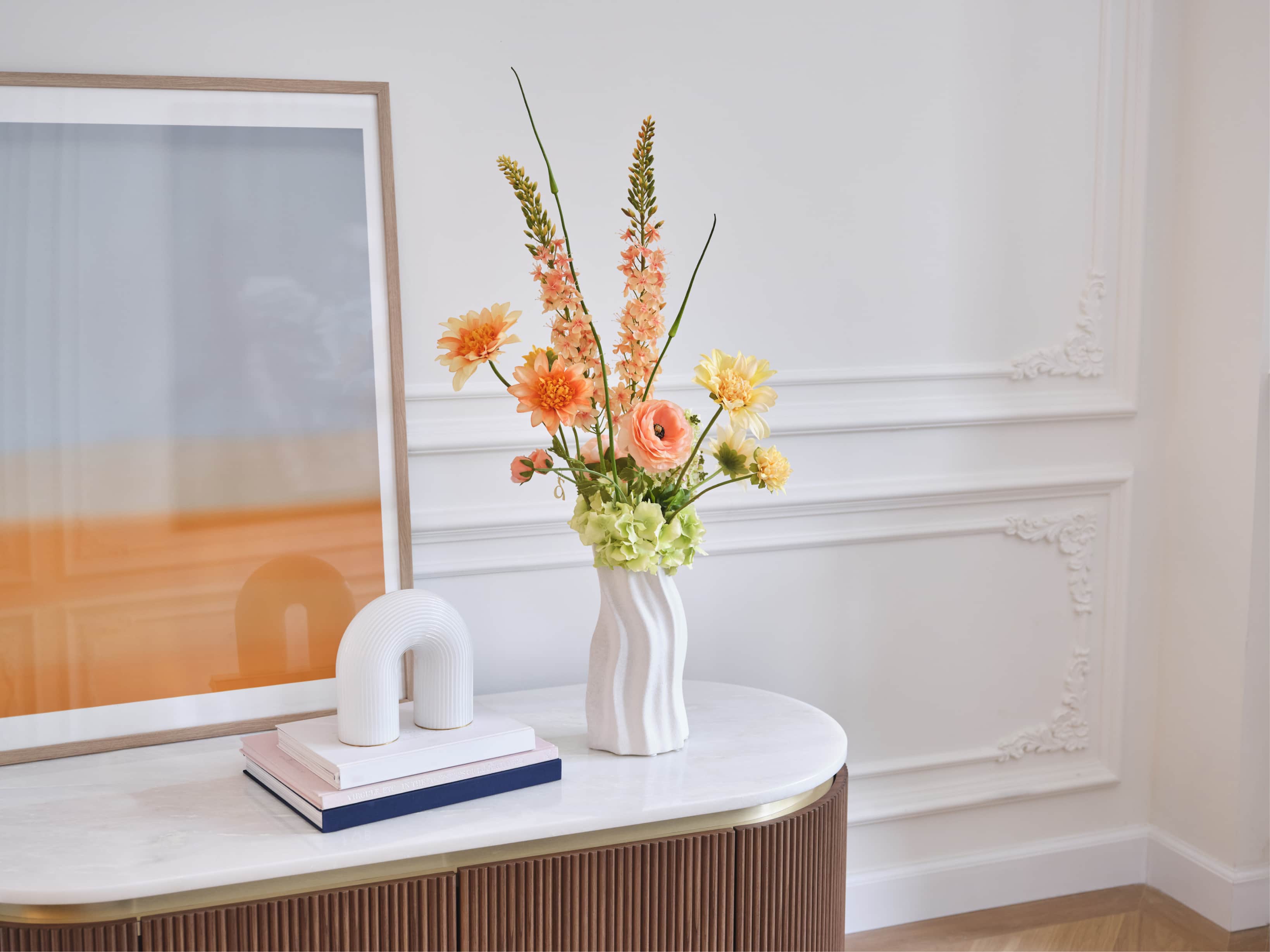 De hoogste kwaliteit zijdebloemenboeketten vind je bij Bloom & Wolf. Wij kopen enkel bloemen van de hoogste kwaliteit in en de boeketten en boeket-vaas combinaties worden samengesteld door onze meesterbloemist.